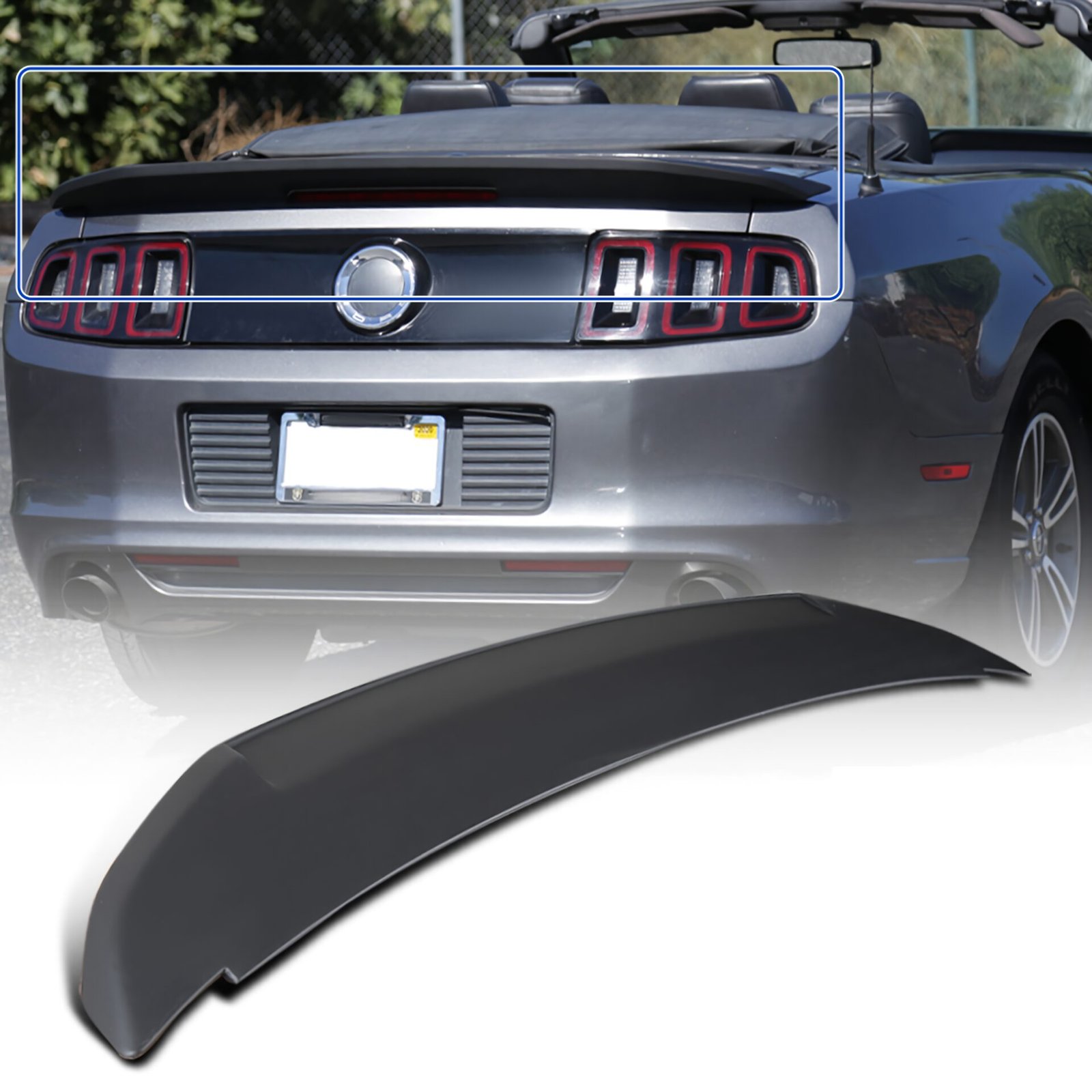 Alerón trasero para Mustang 2010-2014, acabado en negro matte que proporciona un look deportivo y sofisticado. Fabricado con materiales duraderos, contribuye a una mejor distribución del flujo de aire en alta velocidad, combinando estilo y funcionalidad para entusiastas del rendimiento y la estética automotriz.