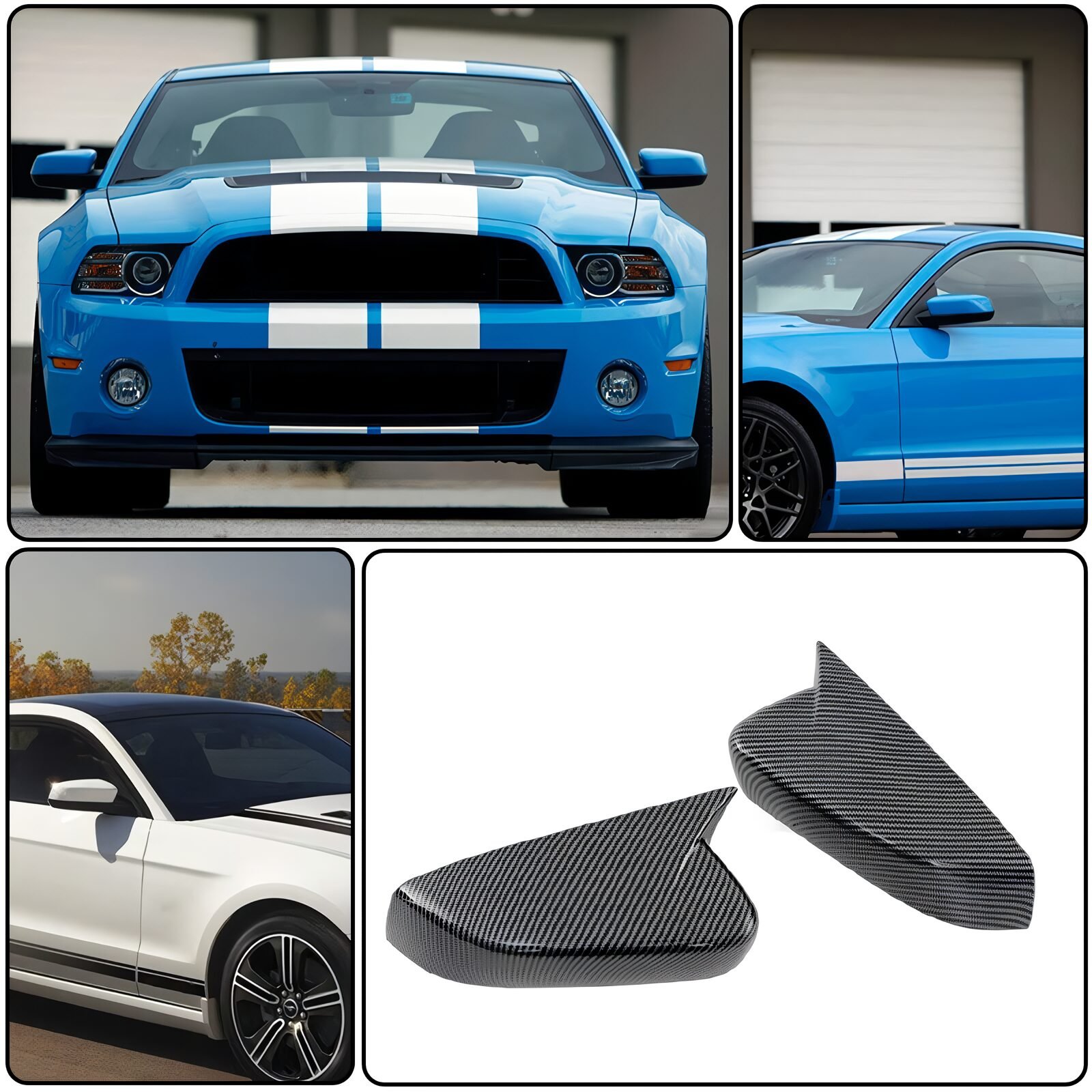Cubierta diseñada para los retrovisores del Ford Mustang 2010-2014. Fabricada en materiales duraderos, disponible en negro gloss o fibra de carbono, proporciona protección contra rayones y elementos externos. Mejora la estética deportiva del Mustang, resaltando su perfil agresivo y moderno con un acabado elegante.