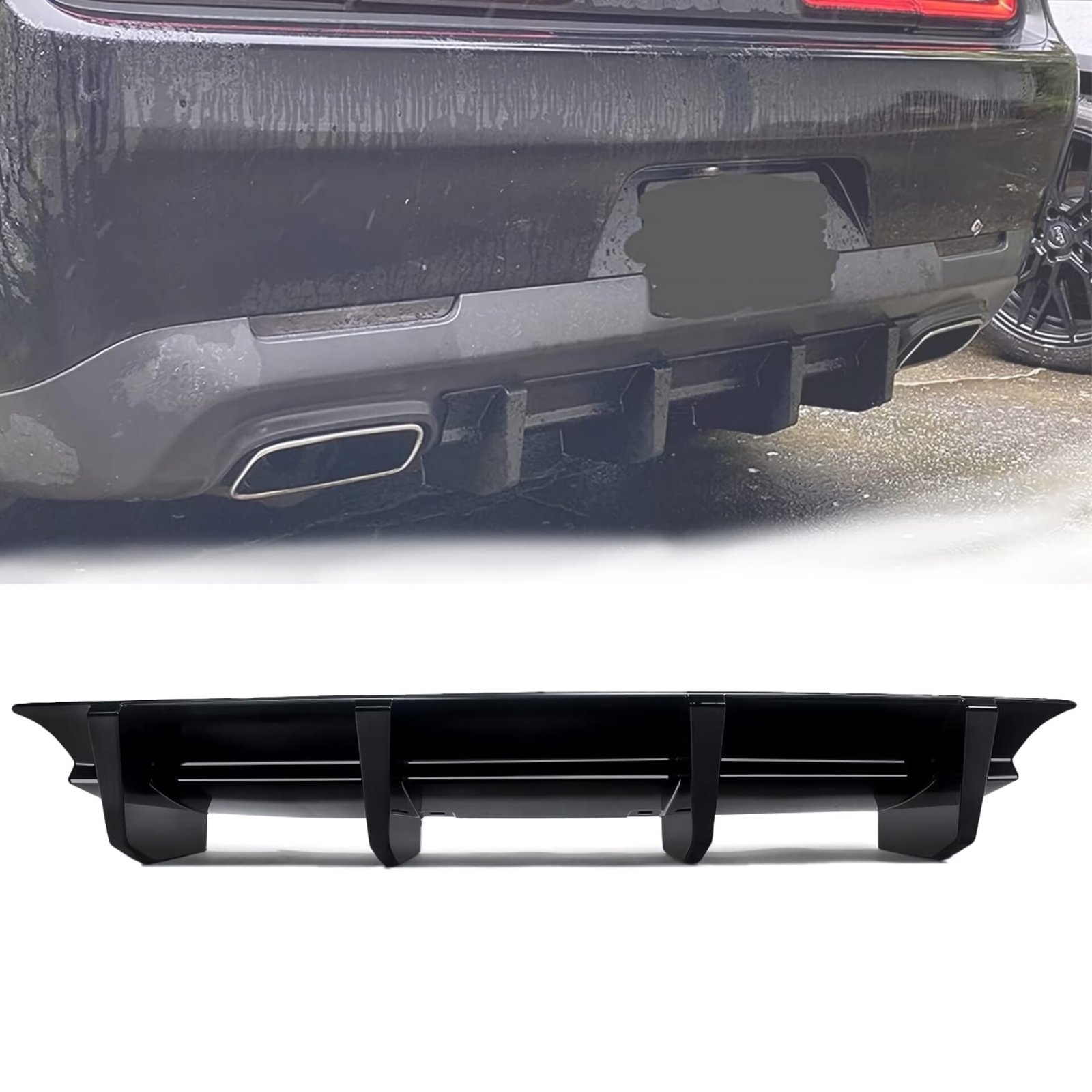 Difusor trasero compatible con Dodge Challenger 2008 en adelante, aporta un diseño sobrio pero deportivo que mejora la apariencia trasera. Su construcción en material de calidad asegura durabilidad y una integración estética con el vehículo.