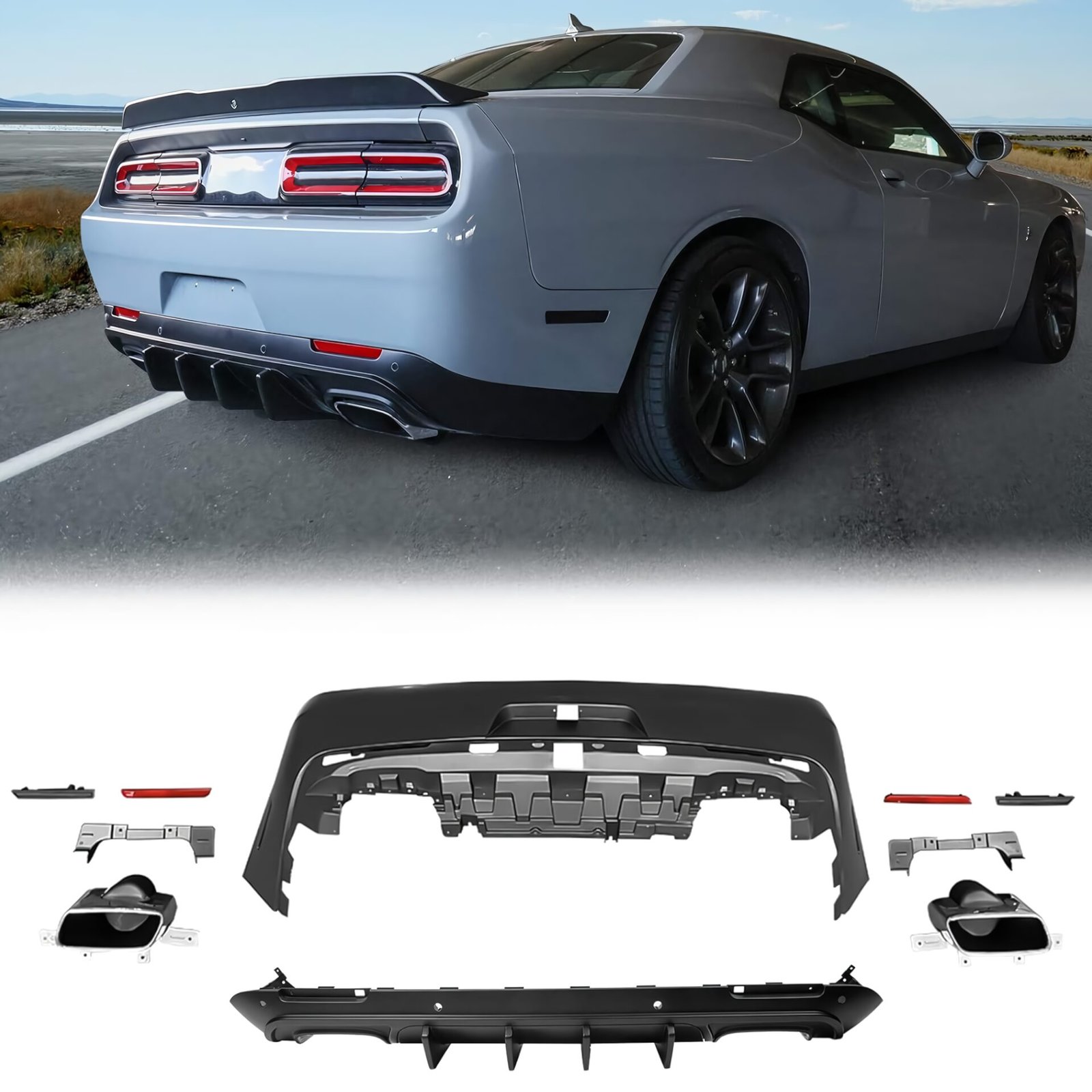 Variante de difusor trasero para Dodge Challenger 2008+, con un estilo más agresivo y detallado. Se adapta a versiones deportivas y refuerza la estética de alto rendimiento. Fabricado con materiales de larga duración.