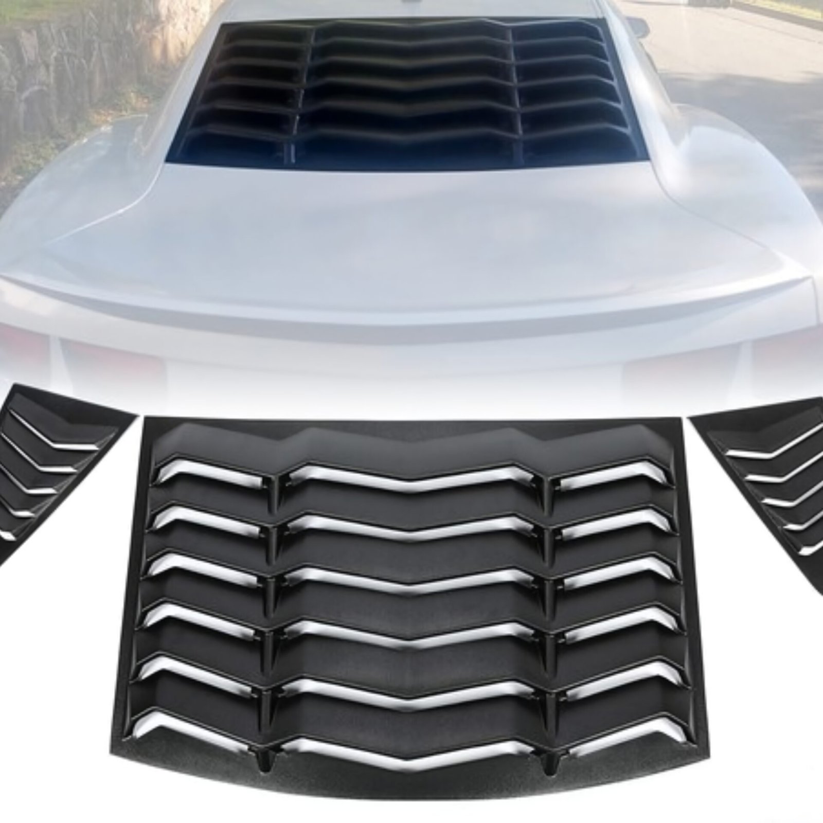 Louver trasero para Chevrolet Camaro 2010-2015, fabricado en ABS de alta calidad con acabado negro matte. Añade estilo deportivo trasero y mantiene compatibilidad con todas las versiones del modelo.