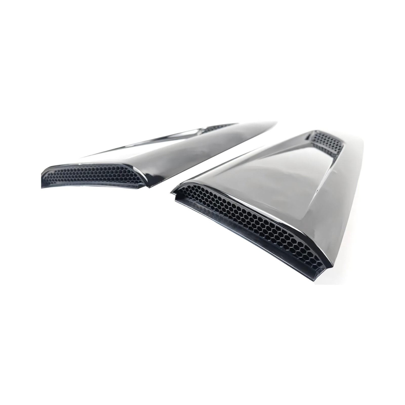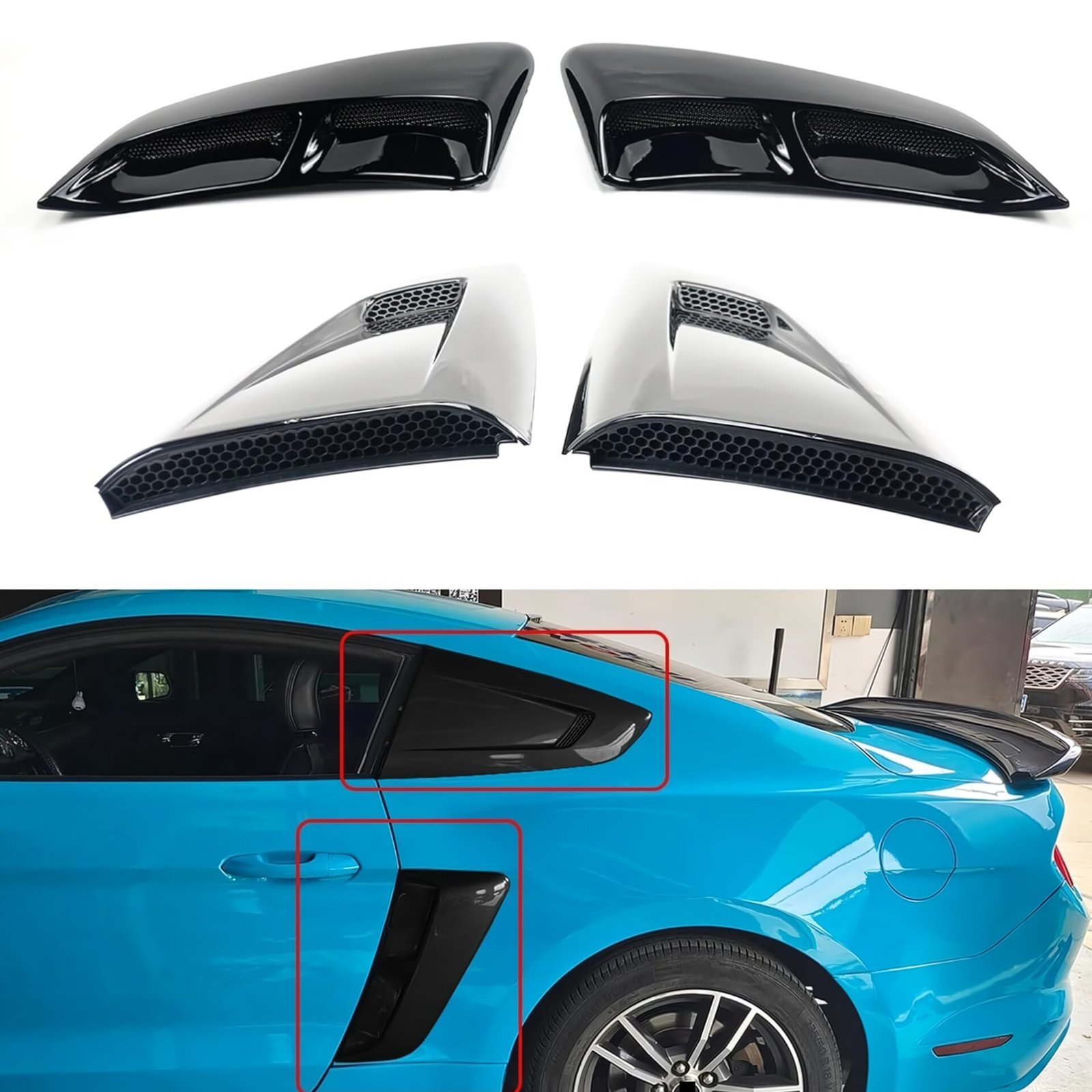Louvers laterales para Ford Mustang 2015-2023, fabricados en ABS reforzado con acabado negro gloss. Mejoran la estética lateral, acentúan líneas deportivas y son compatibles con todas las versiones del modelo.